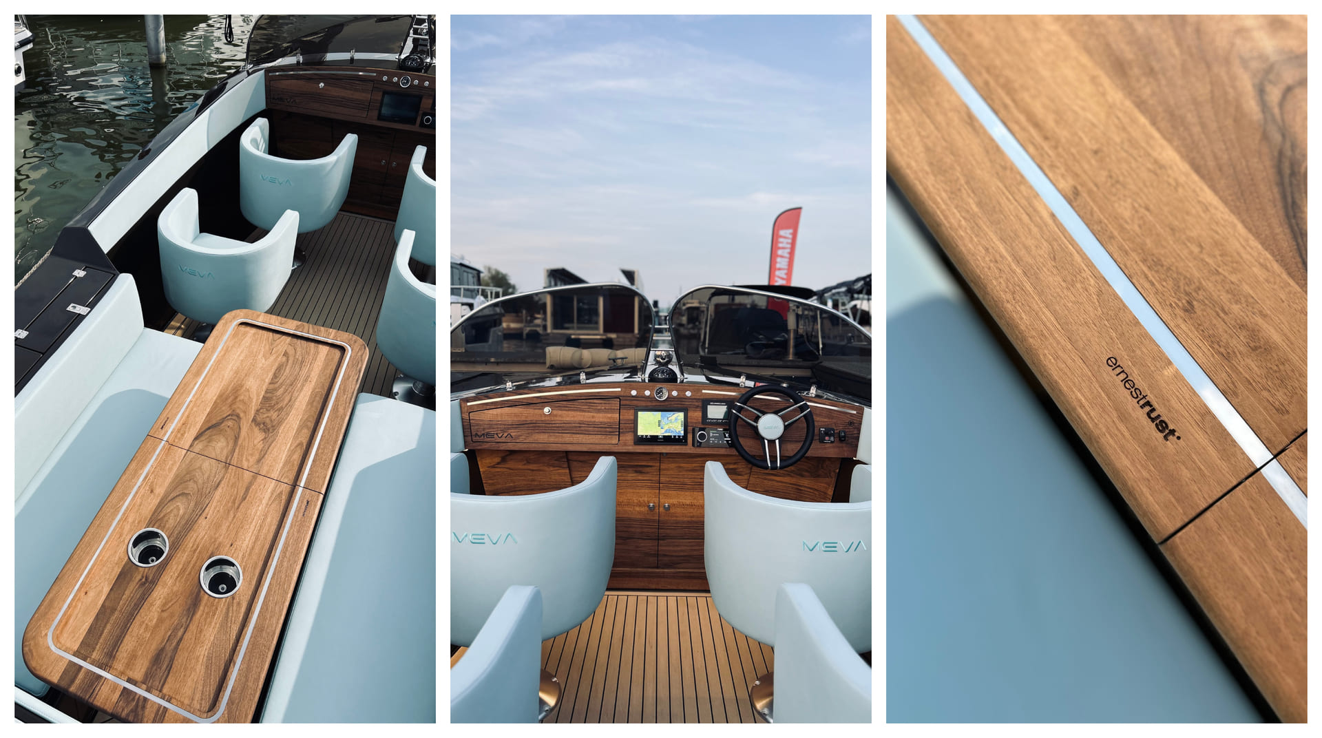 Our task was to create a dashboard that would impress every sailing enthusiast, along with a panel between the seats. This is a key element of the space – immediately visible, exposed to water, sun, and moisture.